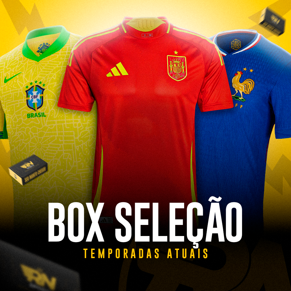 Viva a emoção do nosso campeão de vendas, a Box Seleção da RN Sports, com uma camisa de futebol misteriosa de temporadas recentes.